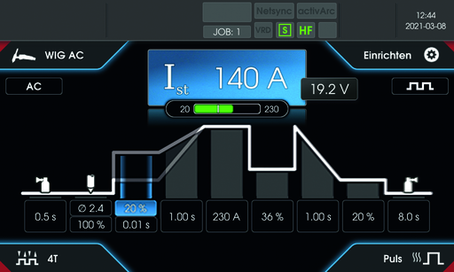 Diese grafische Darstellung sorgt für maximale Transparenz im Schweißablauf und erleichtert die präzise Feinabstimmung komplexer Prozesse – besonders hilfreich bei wechselnden Anwendungen oder anspruchsvollen Schweißaufgaben.